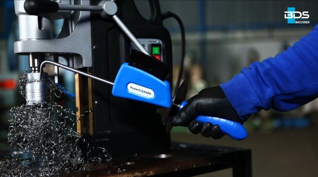 Equipped with a chip hook for efficient removal of drilling chips and a lockable cleaning brush to keep the work surface clean and clear.