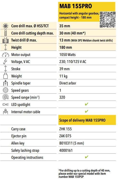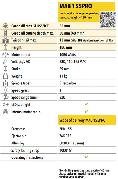 Horizontal Magnetic Drilling Machine with angular gearbox. Ideal for the tightest drilling situations. New! Integrated LED spotlight for greater safety and precise