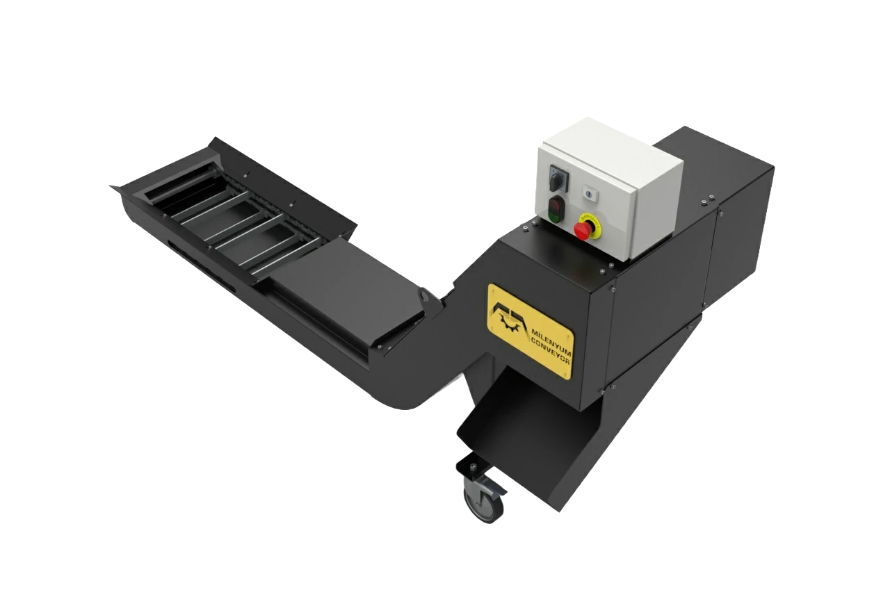 The Milenyum Milscrap bottom scraping chip conveyor series is designed to overcome the challenges of your most demanding material handling tasks. Thanks to its unique chip transport system, it provides smooth, virtually maintenance-free operation. Milscrap ensures reliable transport performance even when the material to be transported is dirty and abrasive, thanks to its powerful bottom scraping belts. It is designed for the transport of small, dust, chip particles, and small components generated during the processing of iron materials. It provides high efficiency in conveying sub-parts from laser cutting, plasma cutting, press operations, CNC machining center parts, and casting chip products. The broken chips transported on the moving bottom scraping pallet are discharged through a powerful motor concealed under a protective plate.