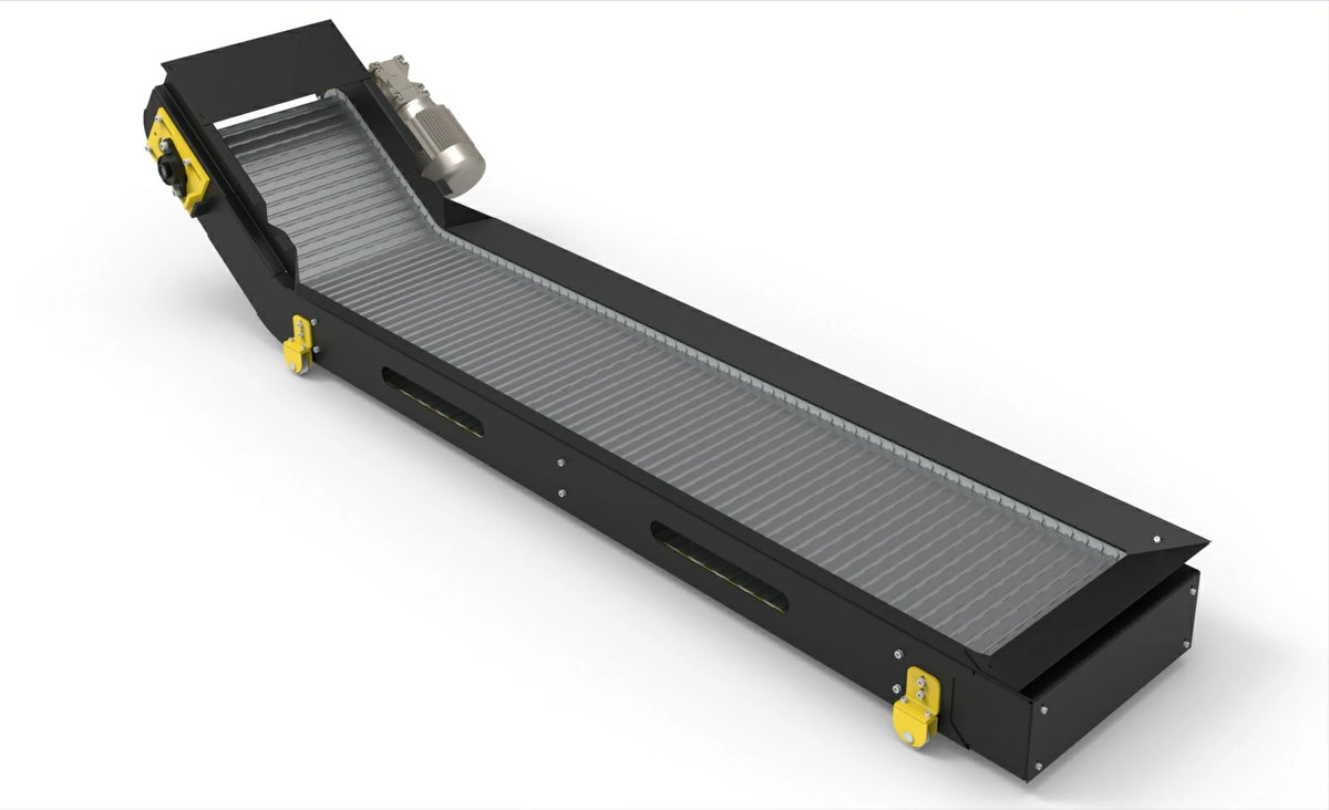 In the Milchip series, the hinged steel belts used are pressed with precise dimensions and tolerances in press molds, preventing the chips and materials to be transported from getting between the hinged steel belts. Interlocking jaws prevent material from getting caught in the chain, ensuring a tight seal on both sides of the belts. Therefore, there is no risk of jamming, tearing, or breakage in the transport mechanism when conveying sharp, abrasive particles, and scrap materials. Maintenance in the Milchip series is minimal, and in addition to the electric motor, the parts requiring protection are completely enclosed. We manufacture the Milchip series of conveyors, highly beneficial for transporting chips and parts from CNC machines processing various materials, CNC automatic, broaching, and pressing machines, as well as from laser and plasma cutting machines, available in various sizes, pitches, and configurations according to customer preferences.
