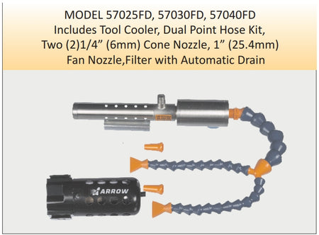 Tool Cooling System includes 30 SCFM Tool Cooler plus filter with automatic drain and dual point hose kit.